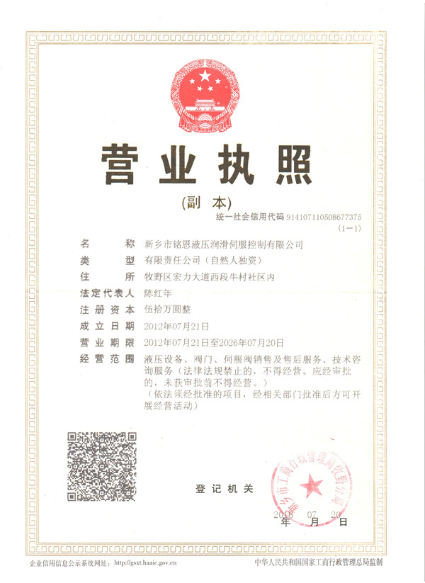 資質(zhì)榮譽(yù)/新鄉(xiāng)市銘恩液壓潤滑伺服控制有限公司